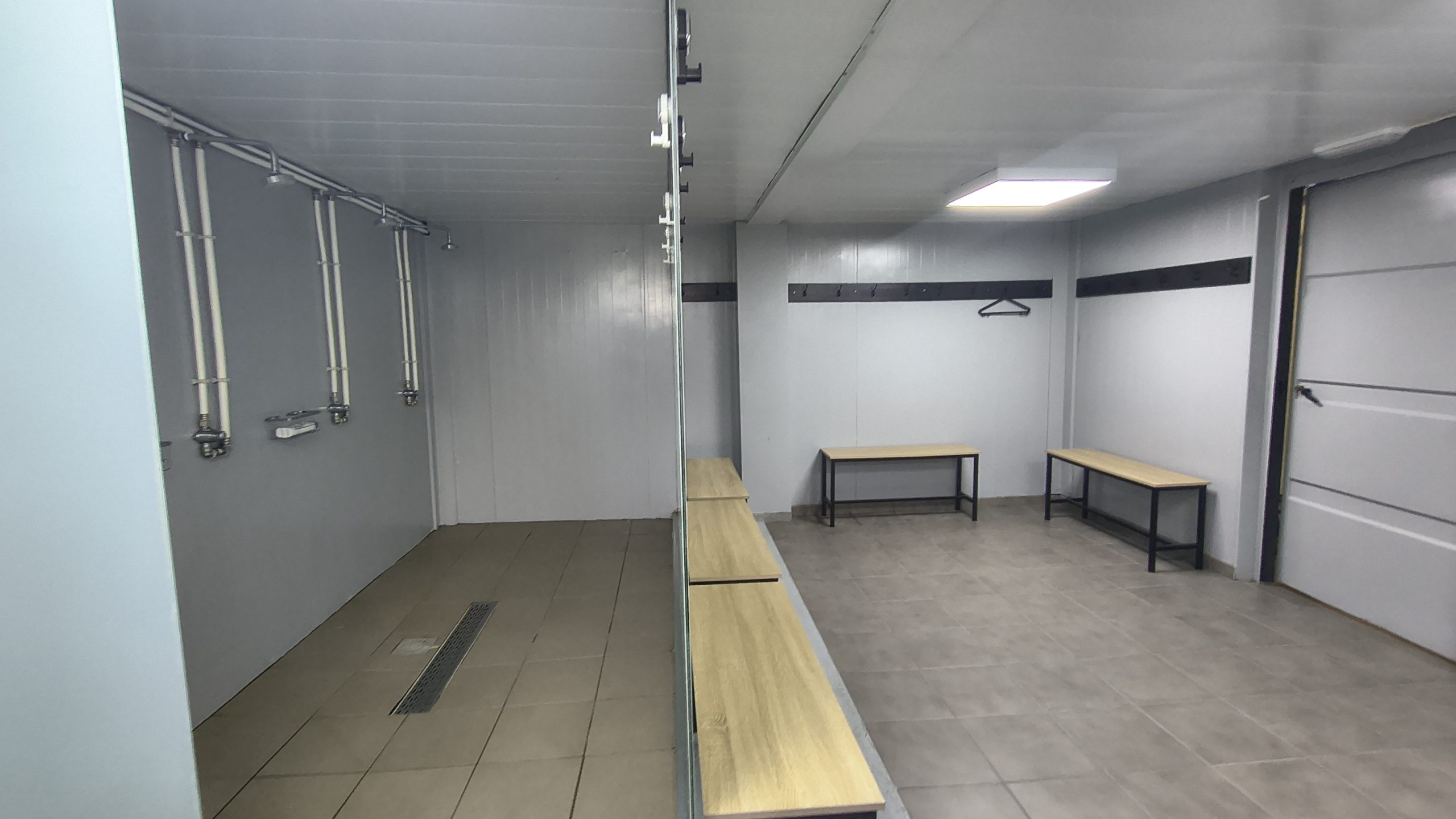 Vestuarios tanto femenino como masculino, con duchas, baño, y amplio espacio para cambiarse.